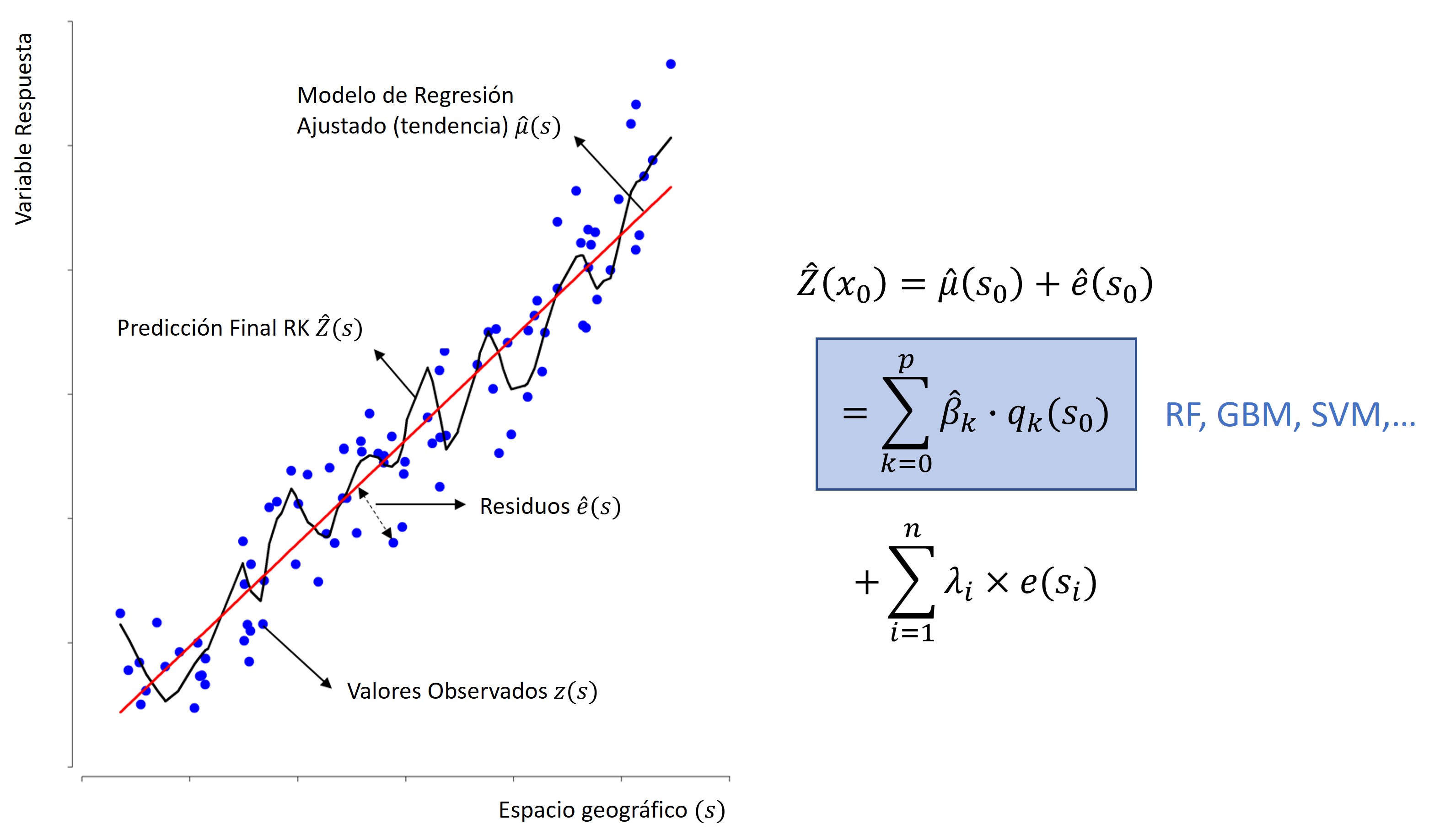 \[\hat{z}_{(s_0)} = f \big(x_{1} (s_{0}),\dots,x_m(s_0),z(s_1),d_1,z(s_2),d_2,z(s_3),d_3,\dots,z(s_n),d_n \big)\] Donde: